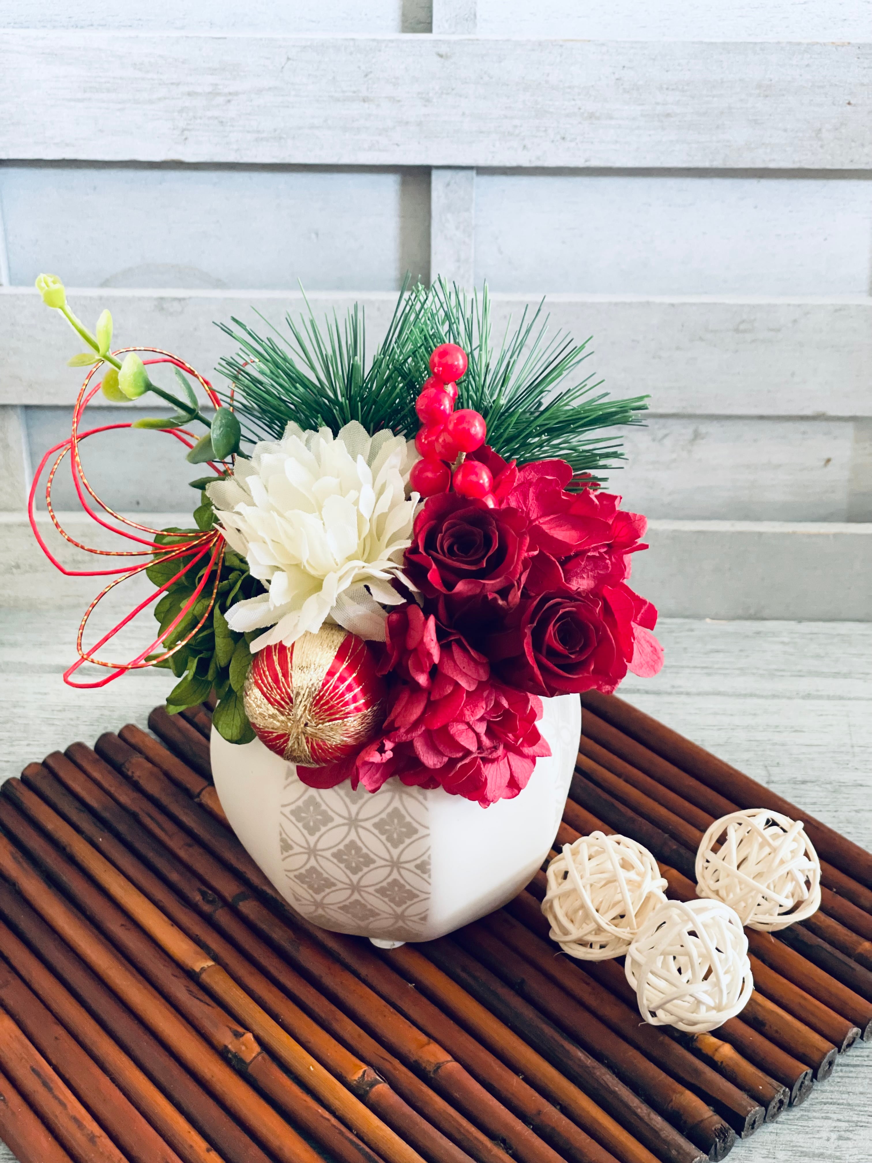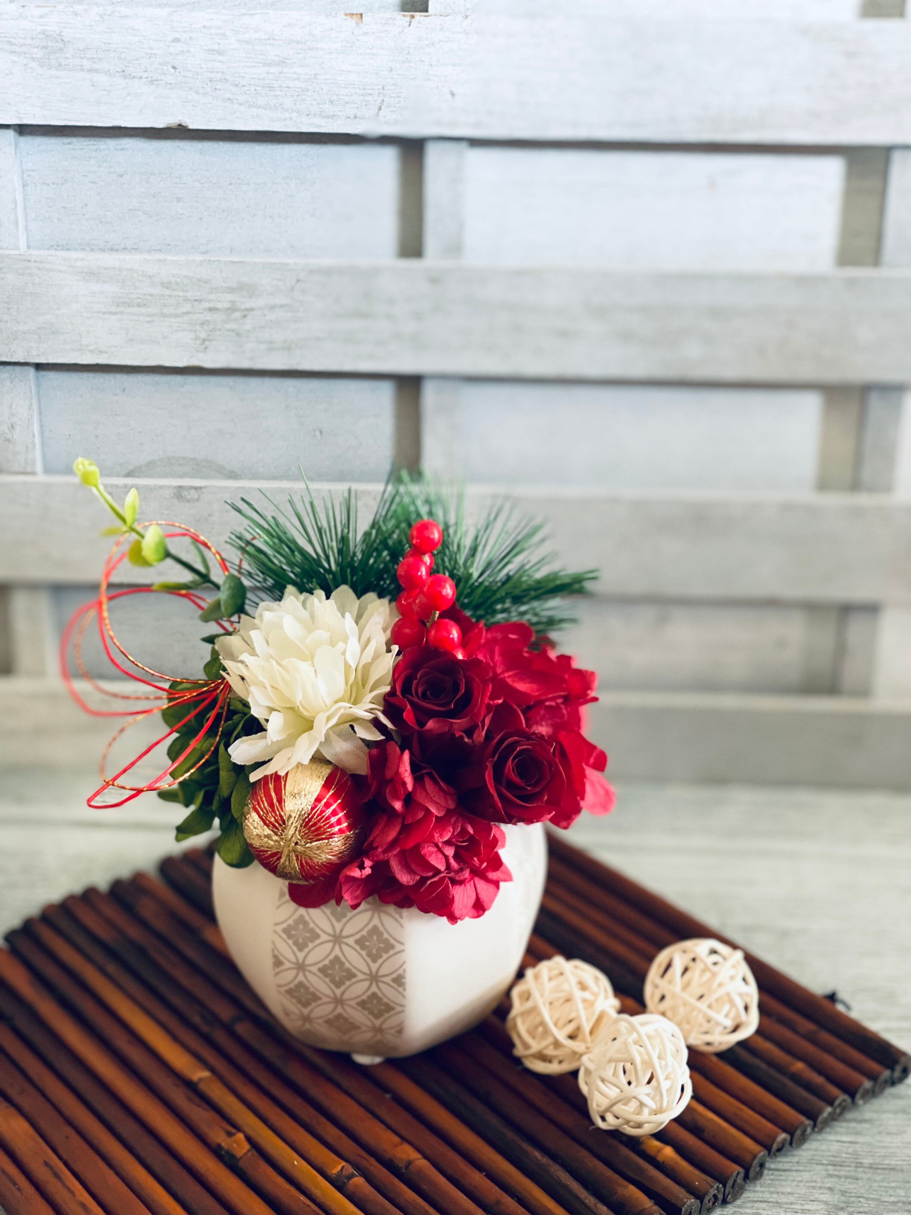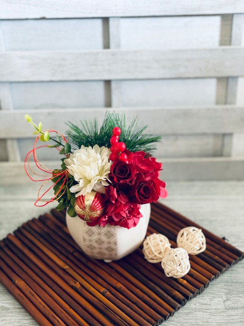 南天や松、水引きなどお正月アレンジには